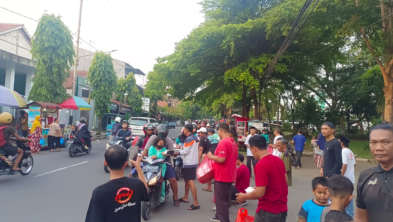 Jombang, Jurnal Jatim – PPMJ (Paguyuban Pedagang Mobil Jombang) membagikan makanan buka puasa ramadan atau takjil kepada pengguna jalan di sejumlah lokasi